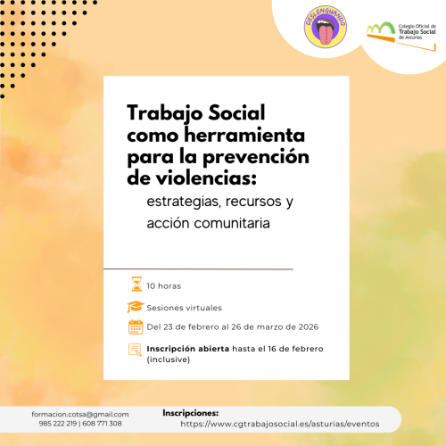 Confirma tu asistencia en el correo asturias@cgtrabajosocial.es hasta las 12.00 horas del mismo miércoles para poder remitirte el enlace a la sesión.