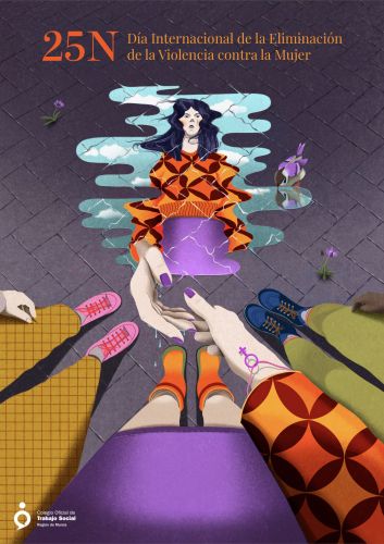 Este año conmemoramos el 25N con una ilustración de la ilustradora murciana Teresa Arroyo Aranda, reflejando la realidad de la violencia contra las mujeres y la importancia del apoyo colectivo. Los colores representados son el morado, que representa la lucha contra la violencia de género, y el naranja corporativo del Colegio integrando así nuestra identidad institucional.