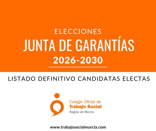 Os informamos que la Junta de Gobierno del Colegio Oficial de Trabajo Social de la Región de Murcia, en sesión celebrada el día 6 de abril de 2026 ha procedido a la proclamación de modo definitivo y por aclamación a las candidatas electas en los cargos de la Junta de Garantías.