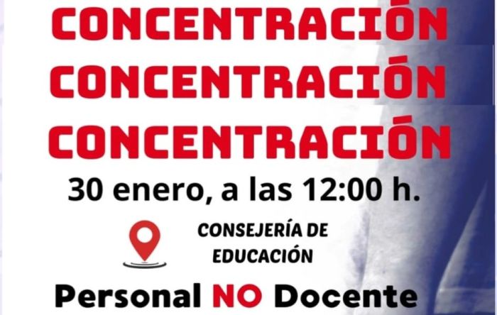 El Colegio ha participado este viernes 30 de enero a las 12:00 en la manifestación convocada frente a la Consejería de Educación por los sindicatos CCOO, Intersindical y UGT, a la que el Colegio se ha sumado en defensa de una Educación Pública digna y del reconocimiento del personal no docente que sostiene el sistema educativo día a día.