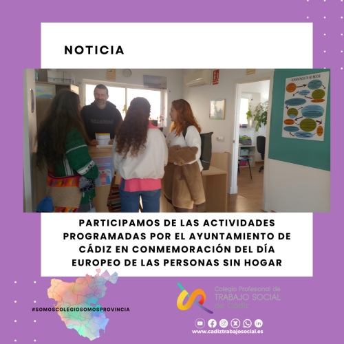 Participamos de las actividades programadas por el Ayuntamiento de Cádiz en Conmemoración del Día Europeo de las Personas Sin Hogar