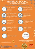 9 sesiones independientes para conocer diferentes ámbitos del Trabajo Social (Sanitario, justicia, dependencia y discapacidad, penitenciario, violencia de género, personas mayores, minorías étnicas y migración, adicciones y menores y familia).