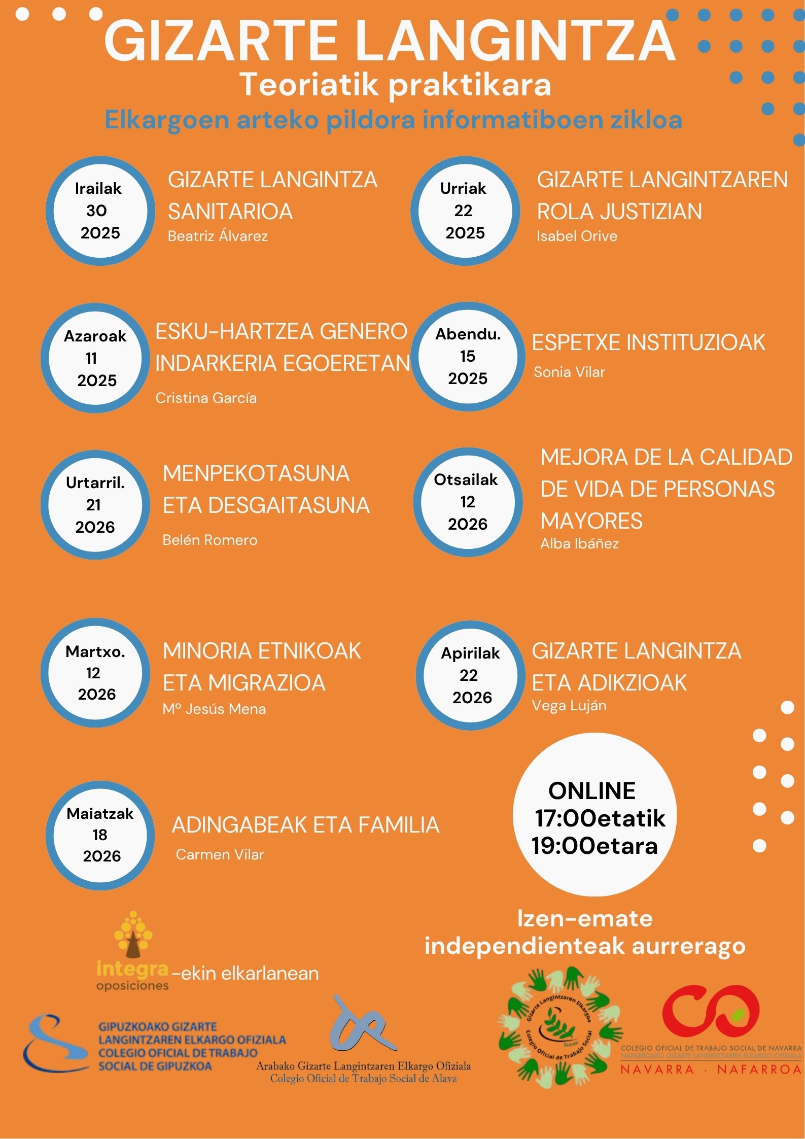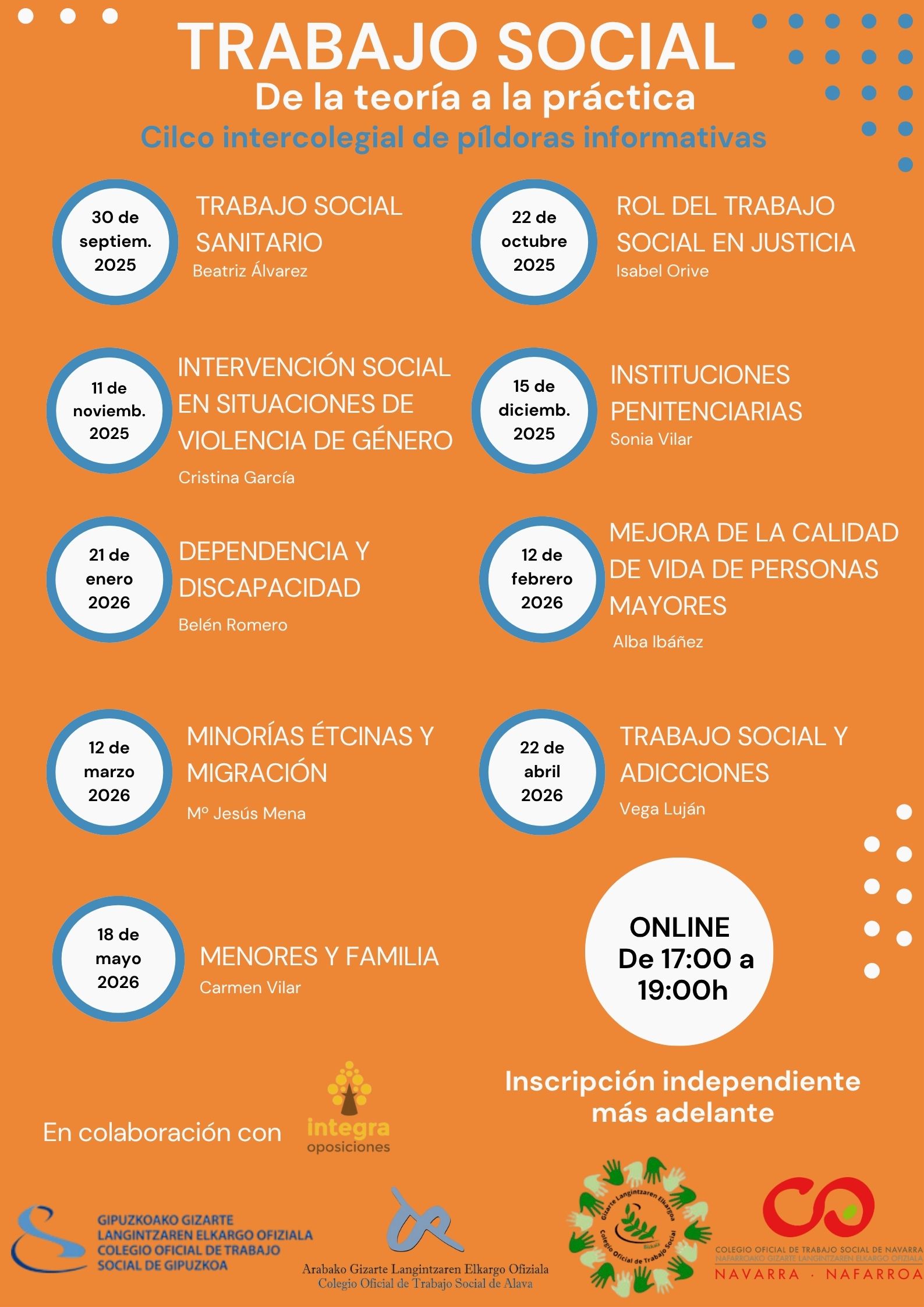 En septiembre comenzó el Ciclo Intercolegial de Píldoras Informativas que los COTS de Araba, Bizkaia, Gipuzkoa y Nafarroa hemos organizado con Integra Oposiciones.