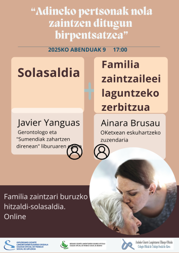 Te invitamos a participar en la sesión online que hemos organizado desde los colegios profesionales de Alava, Bizkaia y Gipuzkoa conjuntamente, en la que participará Javier Yanguas, psicólogo, gerontólogo, autor del libro “Cuando los volcanes envejecen”, en el cual aborda, en primera persona, la compleja realidad de las personas cuidadoras familiares y Ainara Brusau, Trabajadora Social Directora de Intervención de OKencasa, empresa gestora de Zaindoo, el nuevo servicio de apoyo y acompañamiento a las personas cuidadoras familiares puesto en marcha por Gobierno Vasco.