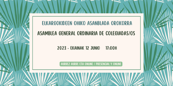 Elkargokide guztiei dei egiten zaie Ohiko Batzar Nagusira, 2023ko ekainaren 12an (astelehena), 17:00tan.