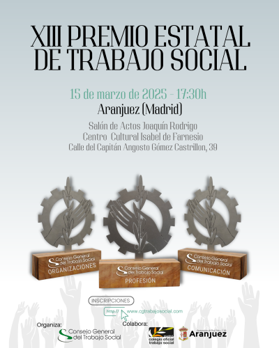 El Consejo General de Trabajo Social abre inscripciones para los Premios de Trabajo Social, la entrega tendrá lugar el próximo 15 de marzo (sábado) en Aranjuez.