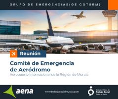 Dña. Laura López Martínez, Gerente y Responsable Técnica del Grupo de Emergencias del Colegio (GE COTSRM) ha acudido a la reunión del Comité de Emergencia de Aeródromo y Subcomité de Emergencia Interno del Aeropuerto Internacional de la Región de Murcia, como grupo que forma parte del Plan de Autoprotección del aeropuerto.