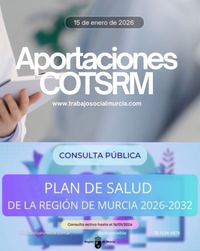 El Colegio ha presentado aportaciones al Plan de Salud de la Región de Murcia 2026-2032, pueden consultarse en la web del Colegio www.trabajosocialmurcia.com apartado de reivindicaciones 2026.